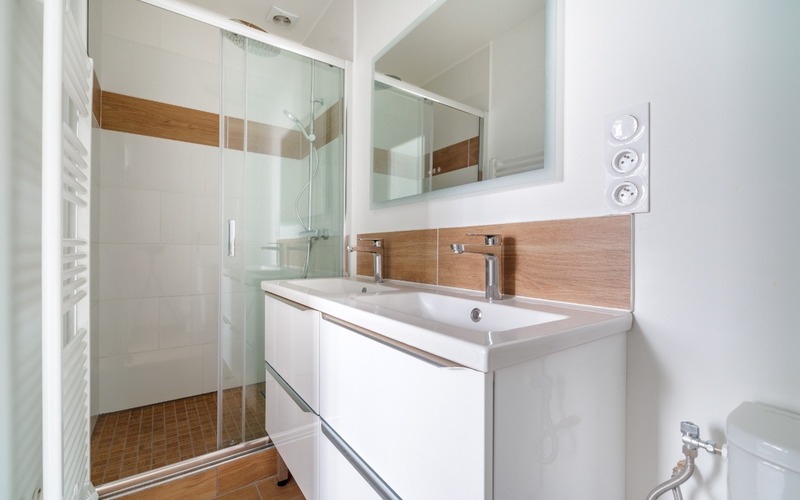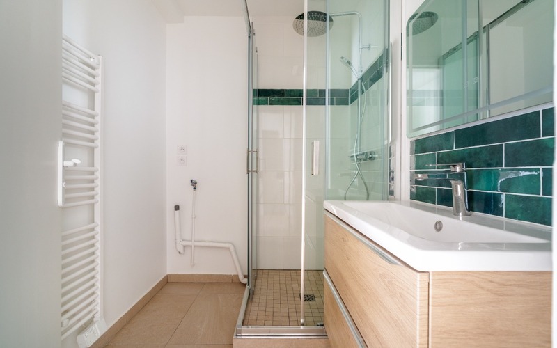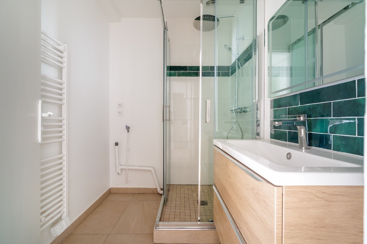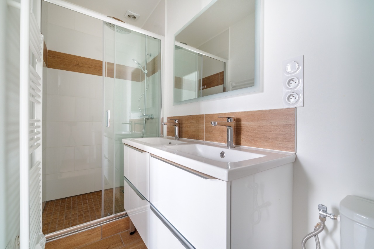 Son plan parfait permet de distribuer un double séjour avec cuisine ouverte équipée, un toilette invités ainsi que 2 chambres et 2 salles d'eau dont une avec toilettes.
